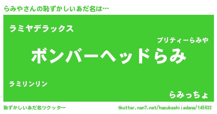| 意味不明あだ名 | 『眠気覚ましガムらみや味』『自称らみや』 |