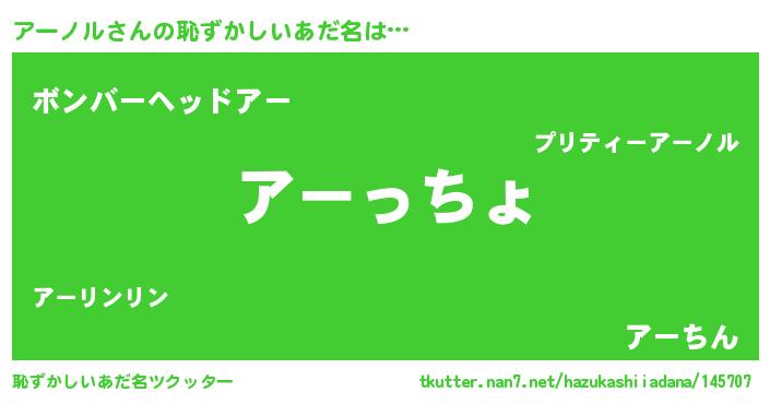 | ヘコむあだ名 | 『豆乳』『アーノル(遠い目)』 |