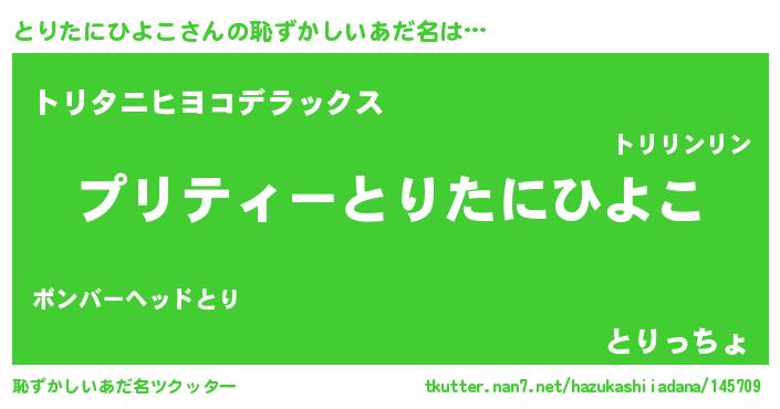 | 男性向けラノベタイトル風あだ名 | 『トリタニヒヨコアートオンライン』 |