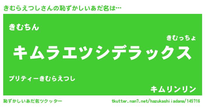 | 意味不明あだ名 | 『自称きむらえつし』 |