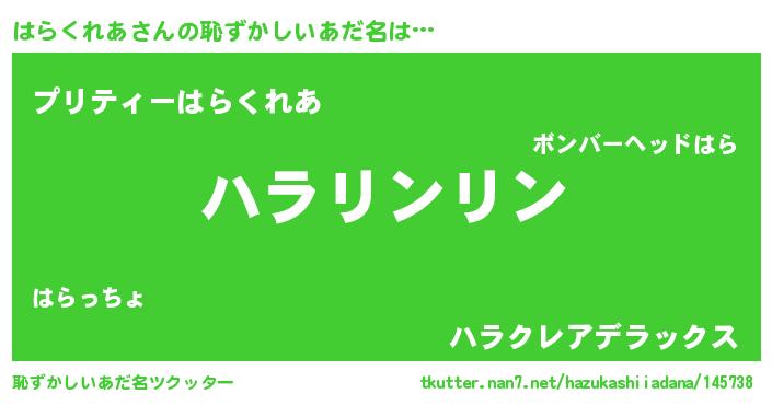 | 意味不明あだ名 | 『とにかく怪しいはらくれあ』 |