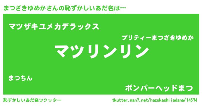 | 意味不明あだ名 | 『とにかく怪しいまつざきゆめか』 |