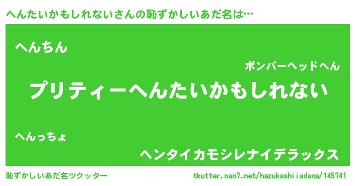 | 男性向けラノベタイトル風あだ名 | 『へんたいかもしれないの憂鬱』 |