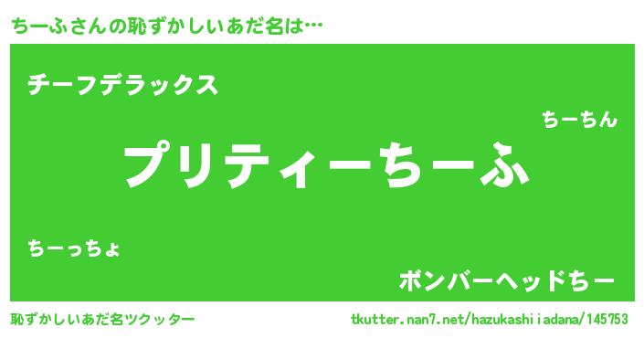 | ヘコむあだ名 | 『ちーにー』『ちーふ(苦笑)』 |