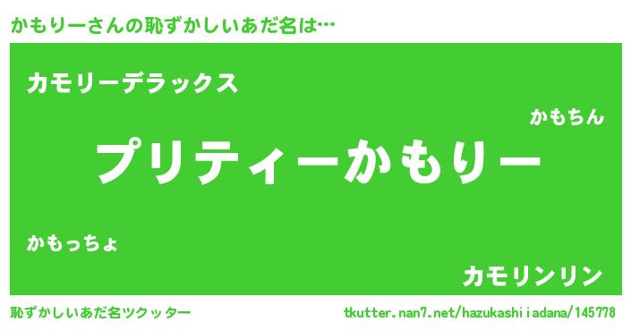 | 胡散臭い通販商品みたいなあだ名 | 『あなたにだけ特別に提供する世界で10本だけ現存している希少なブランデー…その名も「かもりー」』 |