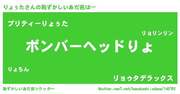 | ヒーロー風カッコイイあだ名 | 『慈愛の使者りょぅた』『仮面リョダー』 |
