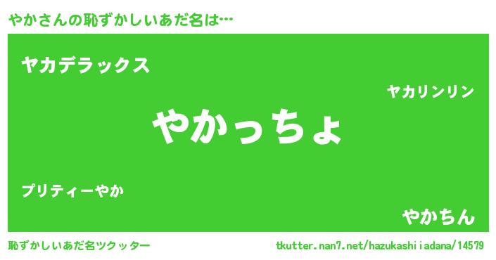 | 意味不明あだ名 | 『やかフォーエバー』『自称やか』 |