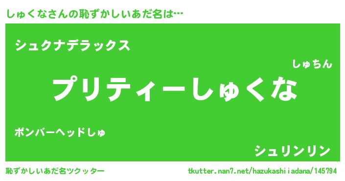 | 意味不明あだ名 | 『住所不定無職しゅくな(93歳)』 |