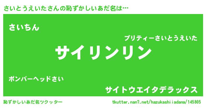 | 意味不明あだ名 | 『とにかく怪しいさいとうえいた』 |