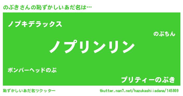 | 意味不明あだ名 | 『とにかく怪しいのぷき』『自称のぷき』 |