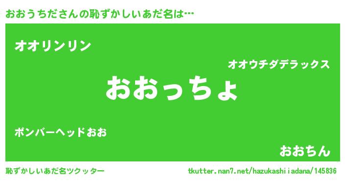 | 意味不明あだ名 | 『住所不定無職おおうちだ(12歳)』 |