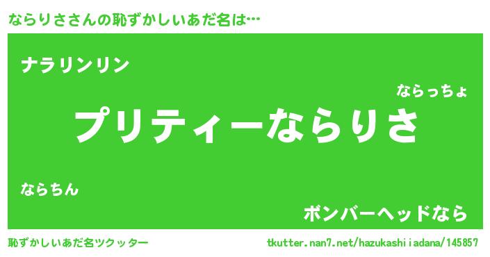 | ヘコむあだ名 | 『ならっふぃ~』『ならぷりん』 |