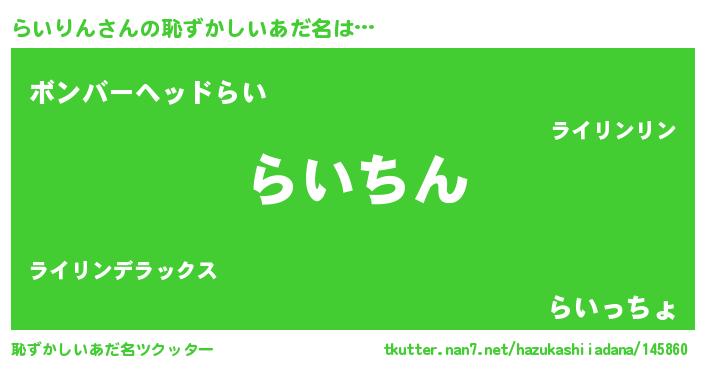 | ヒーロー風カッコイイあだ名 | 『ネオライリン』『慈愛の使者らいりん』 |