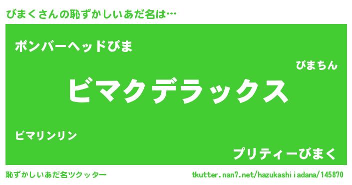 | 意味不明あだ名 | 『住所不定無職びまく(85歳)』『自称びまく』 |