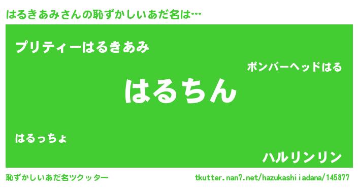 | ヘコむあだ名 | 『はるきあみ(苦笑)』『はるふぇ~』 |