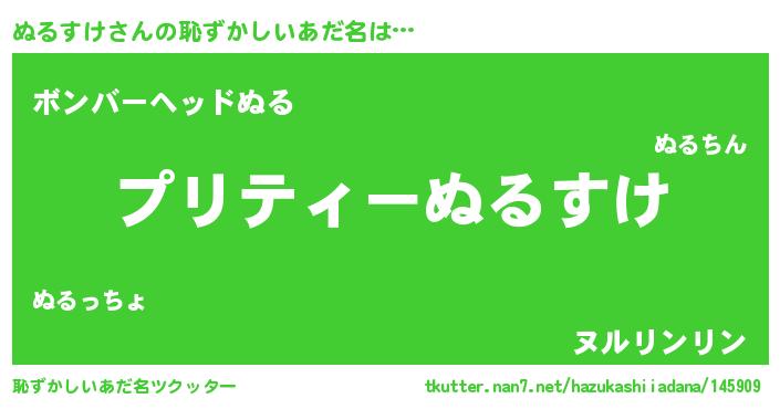 | ポケモン風あだ名 | 『ヌルチュウ』『ヌックウザ』 |