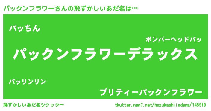 | ヘコむあだ名 | 『パックンフラワー(笑)』『パッにー』 |