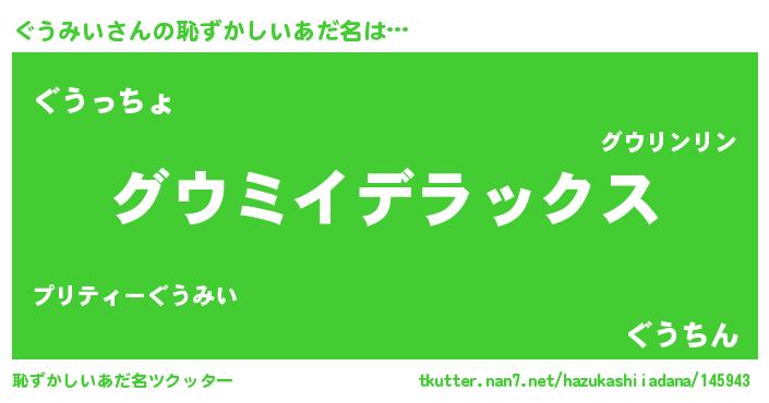 | ヒーロー風カッコイイあだ名 | 『仮面グウダー』『サイバー戦士グウミイ』 |
