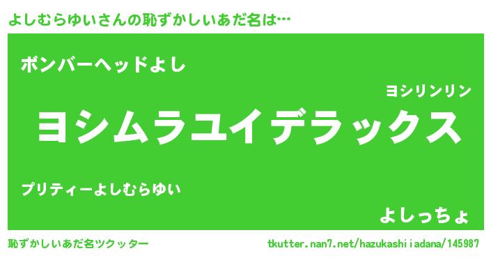 | 意味不明あだ名 | 『自称よしむらゆい』 |