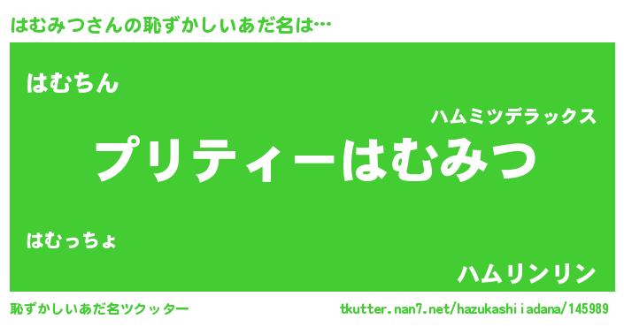| ヘコむあだ名 | 『はむにゅー』『はむみつ(笑)』 |