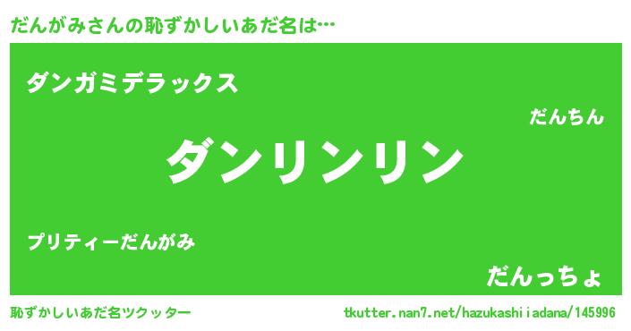 | 男性向けラノベタイトル風あだ名 | 『だんがみの嫁は女の子じゃないと思った?』 |