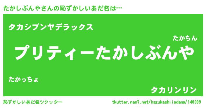 | 伝説のあだ名 | 『伝説のスナイパーたかしぶんや』 |