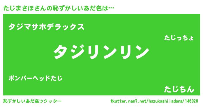 | ヘコむあだ名 | 『たじっぺ』『たじまさほ(笑)』 |
