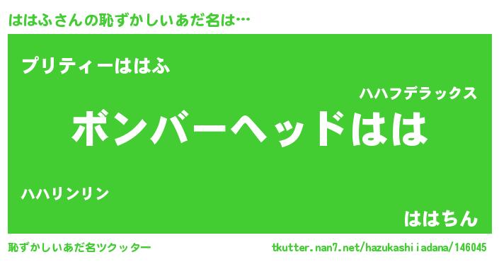 | ヘコむあだ名 | 『ははにー』『ははふ(笑)』『豆乳』 |