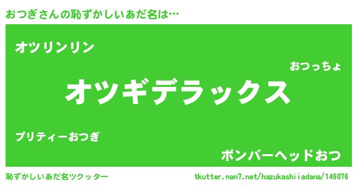 | 男性向けラノベタイトル風あだ名 | 『Re:おつぎから始める異世界生活』 |