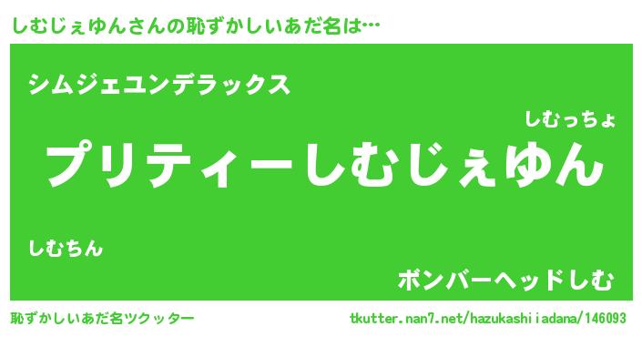| 女子向けラノベタイトル風あだ名 | 『(仮)しむじぇゆんのやんごとなき事情』 |