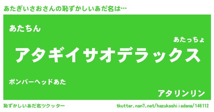| ヘコむあだ名 | 『あたぎいさお(震え声)』『あたっぺ』 |