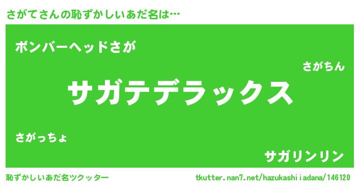 | ヘコむあだ名 | 『さがっぺ』『さがて(笑)』 |