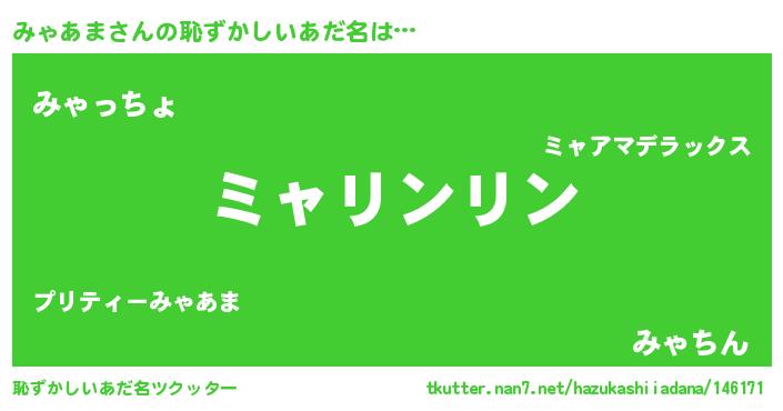 | 意味不明あだ名 | 『とにかく怪しいみゃあま』 |