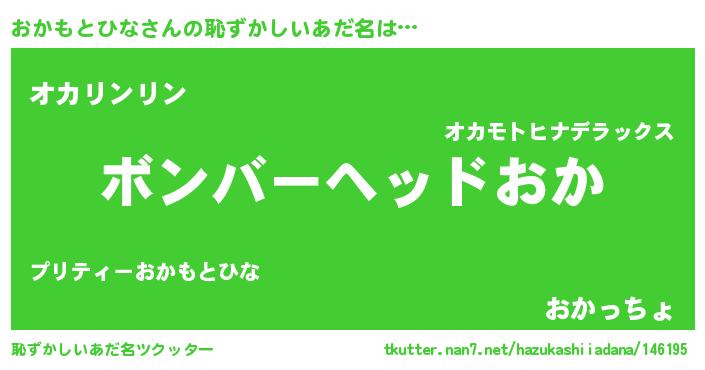 | 男性向けラノベタイトル風あだ名 | 『おまえをオタクにしてやるから、俺をおかもとひなにしてくれ! 』 |