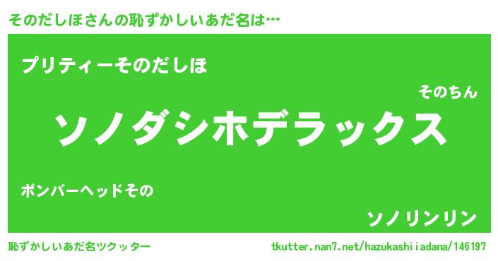 | 男性向けラノベタイトル風あだ名 | 『Re:そのだしほから始める異世界生活』 |