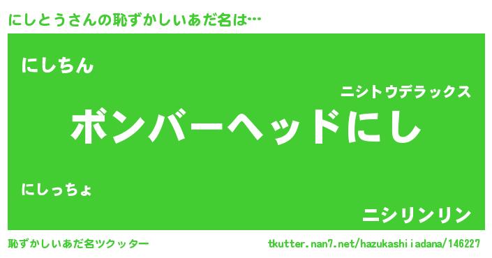 | ヘコむあだ名 | 『にしとう(震え声)』『にしを』 |