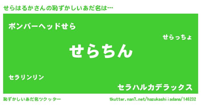 | 意味不明あだ名 | 『永久保存せらはるか』『自称せらはるか』 |