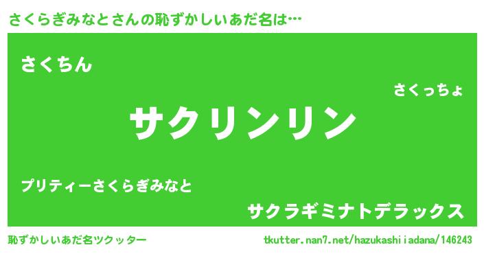 | ヘコむあだ名 | 『さくぷりん』『さくらぎみなと(小並感)』 |