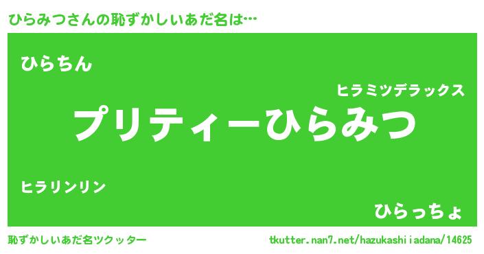 | 胡散臭い通販商品みたいなあだ名 | 『必ず成功するブレスレット…その名も「ひらみつ」』 |