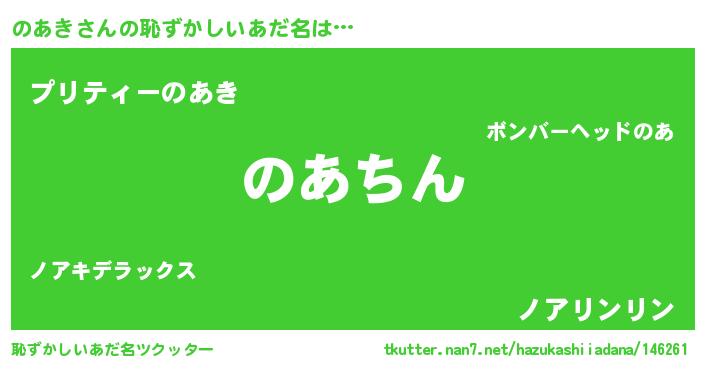 | ヘコむあだ名 | 『のあき(震え声)』『のあにゅー』 |