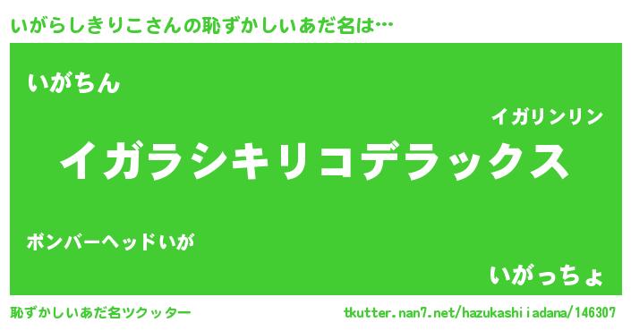 | 可愛いあだ名 | 『いがうちぇる』『いがらしきりこママ』 |