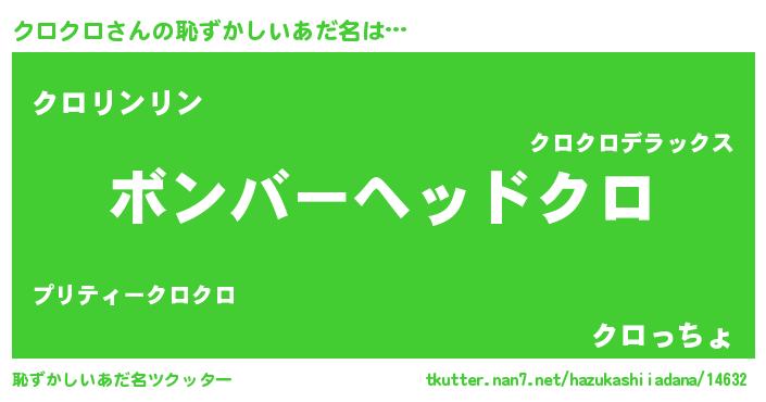 | ヒーロー風カッコイイあだ名 | 『慈愛の使者クロクロ』『銀牙騎士クロ』 |