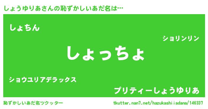 | 意味不明あだ名 | 『しょうゆりあフォーエバー』 |