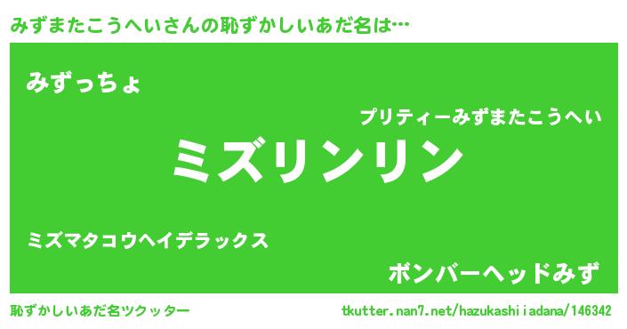 | 意味不明あだ名 | 『とにかく怪しいみずまたこうへい』 |