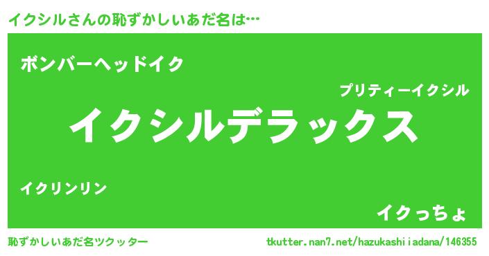 | 女子向けラノベタイトル風あだ名 | 『闇のイクシル』『イクシル恋絵巻』 |