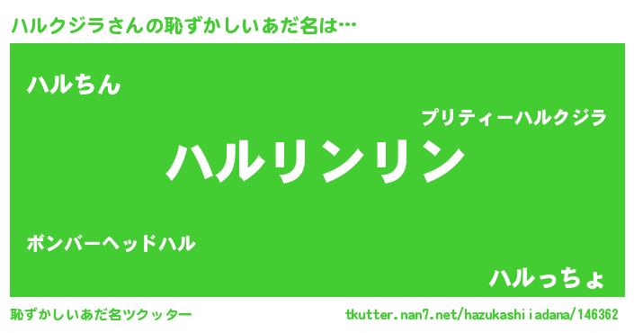 | ヘコむあだ名 | 『ハルっ子』『ハルクジラ(震え声)』 |