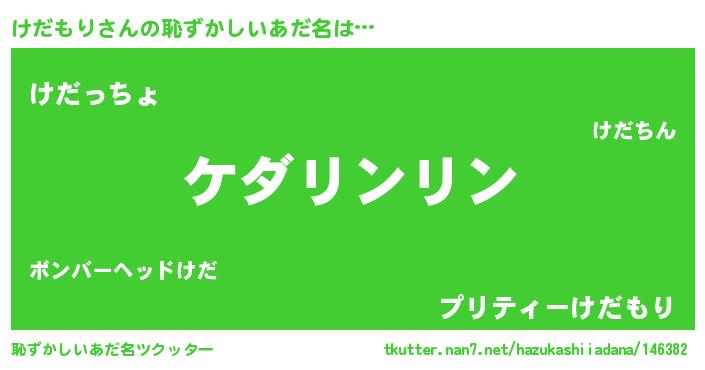 | 意味不明あだ名 | 『住所不定無職けだもり(13歳)』 |