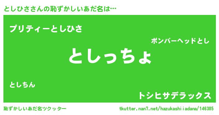| 男性向けラノベタイトル風あだ名 | 『やはりとしひさの青春ラブコメはまちがっている 』 |