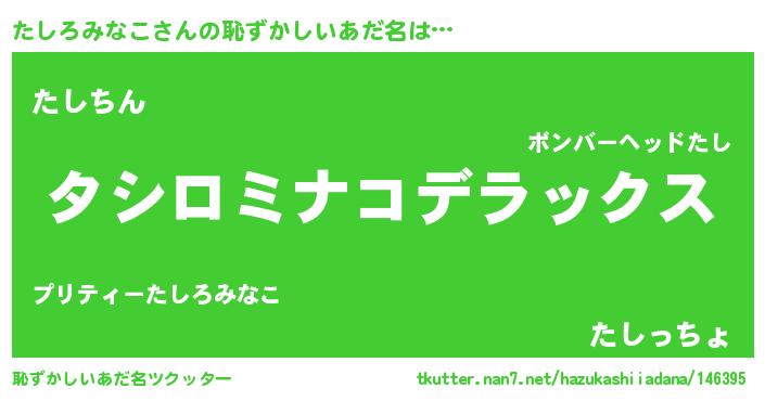 | 意味不明あだ名 | 『自称たしろみなこ』 |