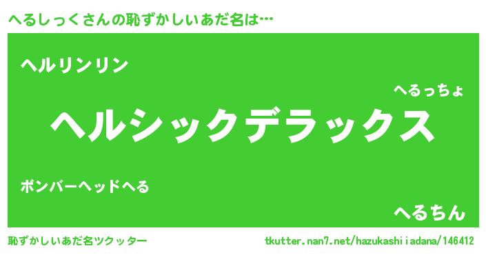 | ヘコむあだ名 | 『へるっちょ』『へるしっく(笑)』 |